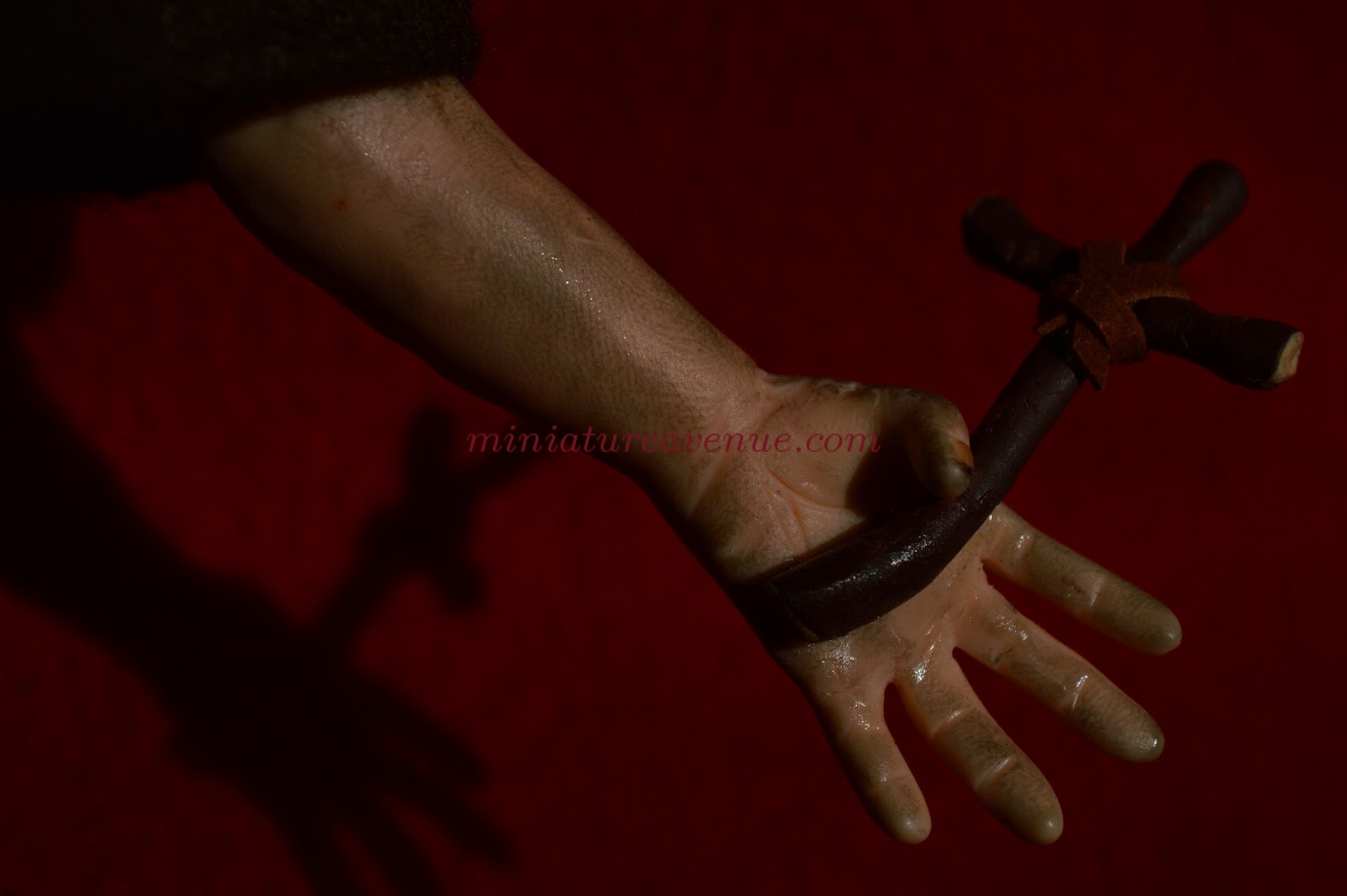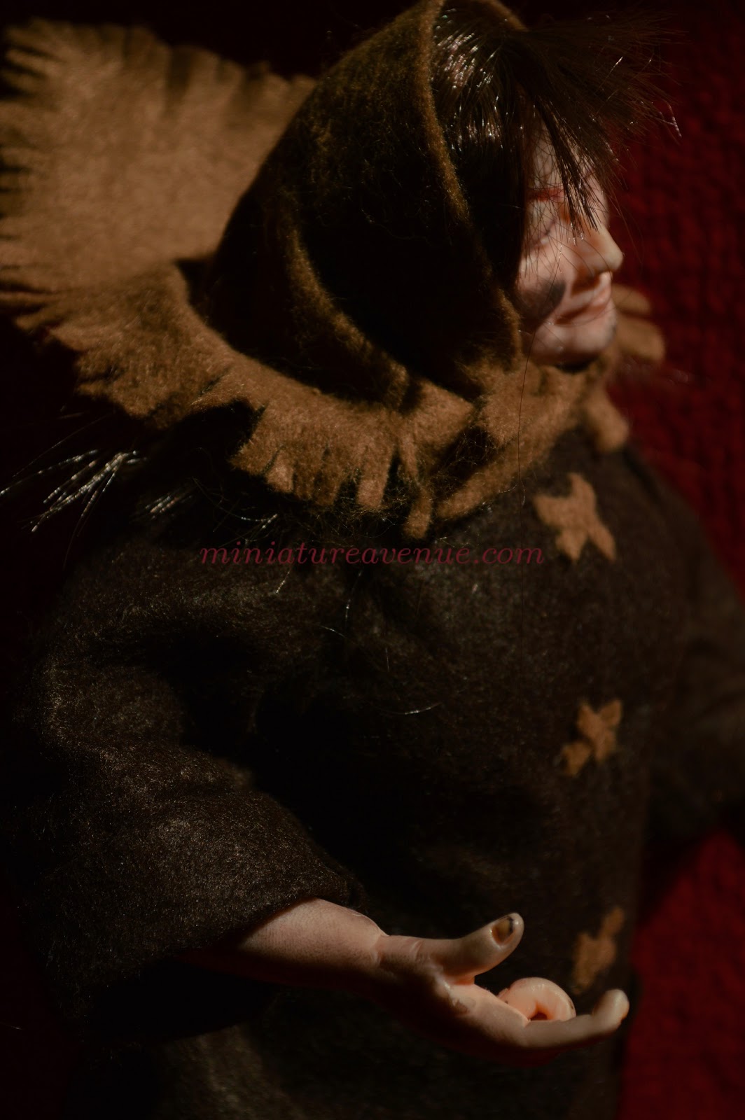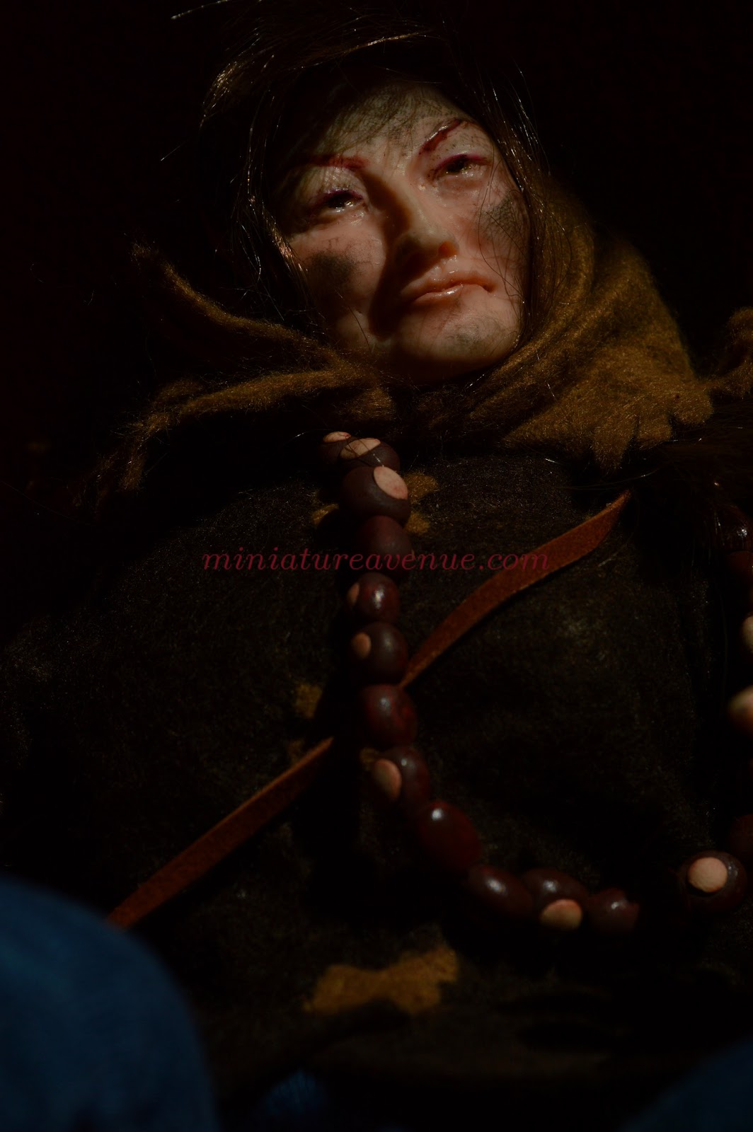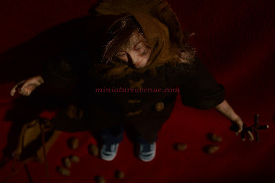 My doll is 25 cm tall. She's not tidy. She carries a large cross in hand and she has a necklace made of chestnuts around her neck, and a large bag filled with potatoes. She is also dressed in modern jeans and dark blue sneakers. This is because her legend is now preserved through the custom of people dressing and performing as Siuda Baba each year in and around Wieliczka.