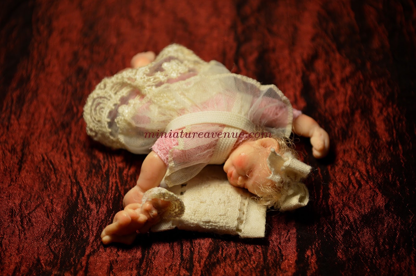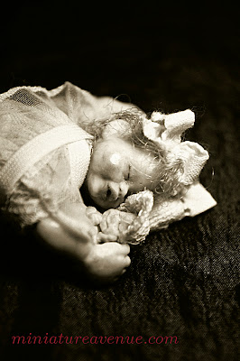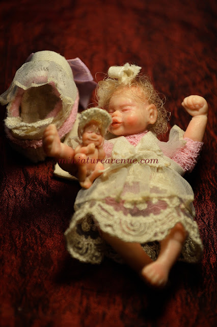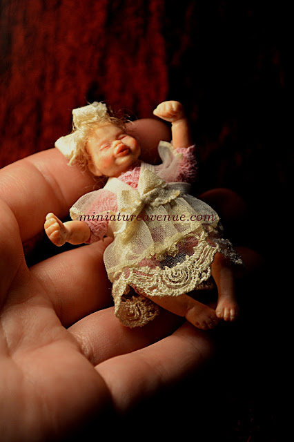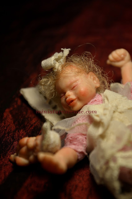 But today I present a little sleepy girl in 1:12 scale. She is 6.5 cm
